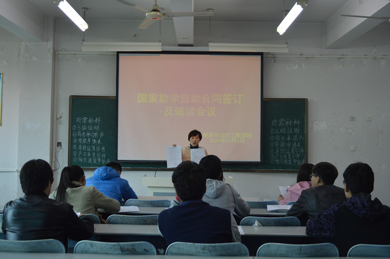 11月1日中午12:00,能源与动力工程公司2016-2017年度高校助学贷款合同签订仪式暨诚信会议在A304多媒体教室举行。党美珠老师及申请国家助学贷款的员工参加了本次会议。