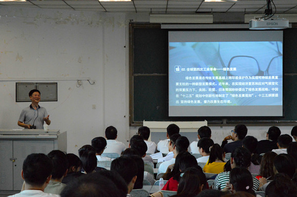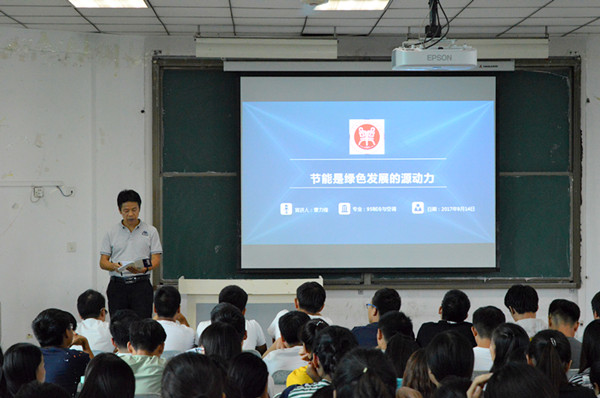 建校60周年之际,为进一步增强公司学术氛围,扩宽员工就业平台,拓展员工发展视野,增强员工实践能力,9月14日下午16点,公司组织16级全体本科生在教学楼A300听取了“节能是绿色发展的源动力”的专题学术报告,主讲人是郑州沃德空调有限公司创始人曹力锋董事长,同时他还是郑州市建筑业协会机电专业协会会长、郑州市绿色建筑与建筑节能委员会副主任兼秘书长。报告会由能源与动力工程公司经理隋继学教授主持。