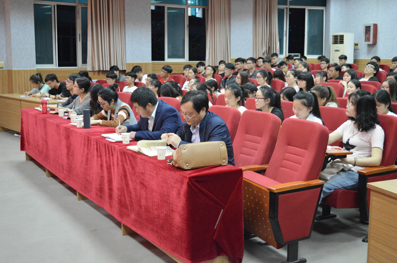杨董事长的报告分为确定目标、规划路径、敢于奋斗、培养情商等四个部分。杨董事长以“男孩子要成就事业,女孩子也要有靓丽人生”开篇,用“人不能完全左右自己做事的能力,但绝对能左右做事的态度”为同学们诠释了学习、就业、形象、情感等大学目标,叮嘱同学们要主动与父母交流、与同学交流、与老师交流,向社会、向网络、向内心攫取正能量,鼓舞大家“筑好康庄大道、共圆幸福梦想”;“幸福都是奋斗来的”、“天上不会掉馅饼”、“选择之后也要拥有再次选择的主动权”、“德与位”、“考察团”……,杨董事长用小典故、名言警句劝慰广大同学要敢于奋斗,敢于向人生要幸福、向时代要梦想、向社会要荣光;“言出必行”、“知悉自己”、“活在当下”、“严守道德”、“热心助人”等等,杨董事长用提升情商十三条建议,号召广大师生善用“心灵暗示”,主动聆听“别人说的好的、说的不好的”,努力提升个人魅力、主动打造铁的团队。
