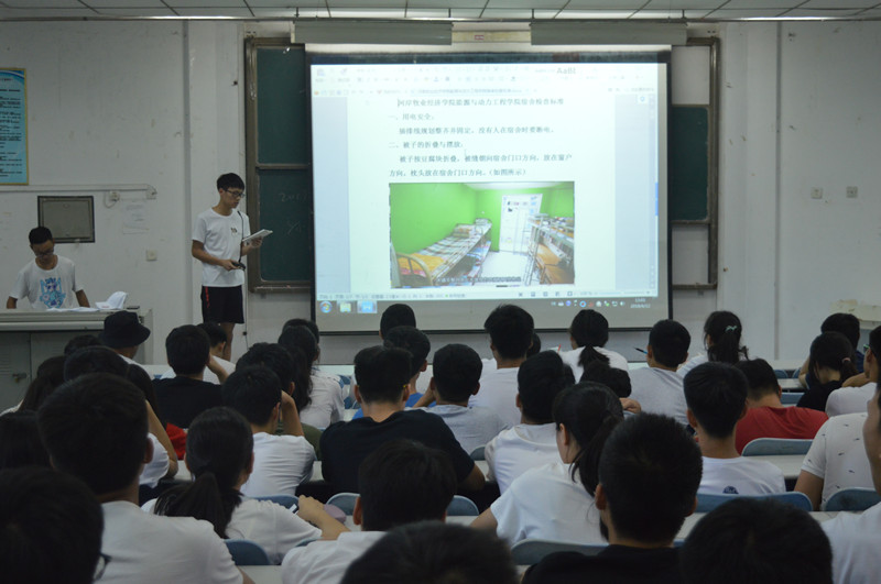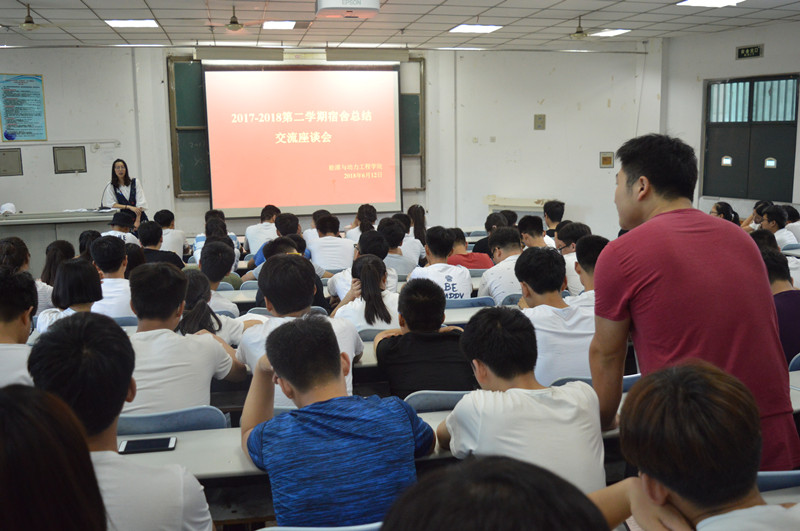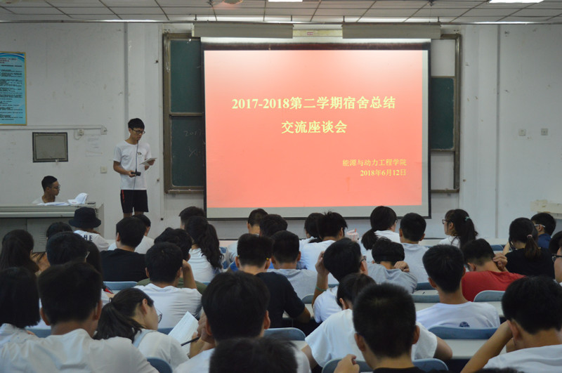 为提升员工宿舍管理水平,构建文明、洁净、和谐的宿舍环境,征求员工对于宿舍建设和管理的意见和建议,6月12日中午,能源与动力工程公司于教学楼A100开展了2017-2018第二学期宿舍总结交流座谈会,辅导员段欢欢及各班寝室长参加本次活动,会议由院生活部程相杰、李明轩主持。