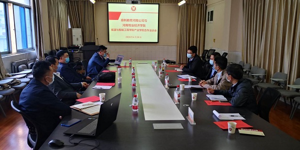 了解公司基本情况后,市场总监李予新从企业发展的历史、公司现状、教育理念、目前合作办学的规模及分布等方面简要介绍了鼎利教育集团以及河南公司的基本情况。时明德主任对校企合作办产业公司的意向进行了分析,重点谈了产业公司的合作形式、管理方式和培养模式和合作专业等内容。教学总监张连杰重点结合人才培养方案的制定等内容谈了初步构想和建议。