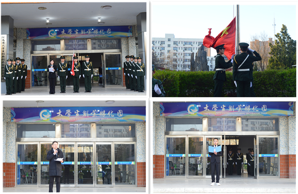 在铿锵有力、整齐划一的脚步声中,国旗仪仗队来到升旗台前护卫国旗。在雄壮的义勇军进行曲中,五星红旗冉冉升起。现场院领导及师生代表庄严肃立,面向五星红旗高唱国歌。