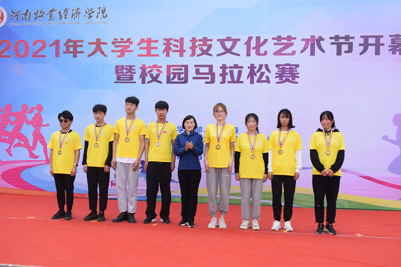 校园马拉松开幕式在精彩绝伦的健美操表演中拉开帷幕,杨宝进董事长在开幕式致词中讲道:2021年是中国共产党成立100周年,是国家“十四五”规划的开局之年,更是公司迎接本科教学工作合格评估,实现教育事业发展“三步走”战略目标第一步的关键之年。马拉松是校园科技文化艺术节的第一场全校性活动,用运动强身健体,在体育运动中展示牧经学子风采、发扬牧经精神。开幕式上,裁判员代表宣布校园马拉松竞赛规程,领导为各公司代表队授旗。