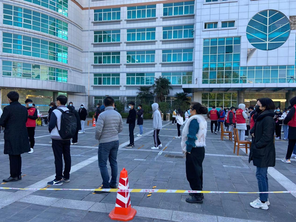 为保证本次核酸检测各项工作有序开展,公司志愿者于早上七点提前布置好检测场地,采样现场严格按照防疫要求划分等候区、核酸检测点,全力配合医务人员的工作,承担了指导扫码、信息登记、现场指引等工作。防控办、各工作小组和公司多部门通力合作,为检测工作的开展提供了强有力的后勤、安全及场地保障。为避免人员聚集,公司安排学生以班级为单位,分时段、分批次,错峰接受检测。在检测等侯区和核酸检测区,公司师生严格遵守现场检测规定,全程佩戴口罩,间隔一米,有序排队等候,并按照志愿者的指引在进行采样后有序离开,整个检测流程规范有序,秩序井然。在公司全体师生的共同努力下,公司圆满完成了核酸检测的任务。