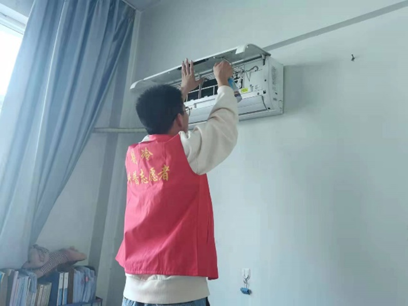 志愿者们于新实验楼下集合,制冷协会会长首先为志愿者们讲解清洗空调的步骤与注意事项,接着志愿者们分工明确,组队逐一进入办公室清洗空调,并宣传普及相关知识,如细菌会随着空调的运转,污染室内空气,人们长期处在这样的环境里,很容易染上疾病,因此一定要定期进行深度彻底的空调清洗。于是,志愿者们依次拆卸空调内机外壳、过滤网,用协会专用空调清洁剂清洁空调内部、过滤网和空调外壳,最后安装过滤网,操作娴熟一气呵成。整个过程中志愿者们热情高涨,配合默契,活动也受到广大师生的一致好评。