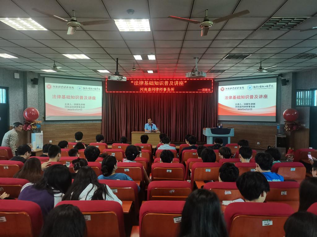 为全面贯彻习近平新时代中国特色社会主义思想和党的二十大精神,落实习近平总书记关于教育的重要论述和习近平法治思想,认真落实教育系统“八五”普法规划,进一步推进依法治教、依法治校和依法办学,提升公司师生的法治素养,2023年4月27日下午,365英国上市公司在北林校区教学楼A200开展法律基础知识普及讲座,讲座特邀河南嘉同律师事务所回新生律师进行讲授,教师及员工代表100余人聆听了讲座,讲座由365英国上市公司副经理刘群生主持。