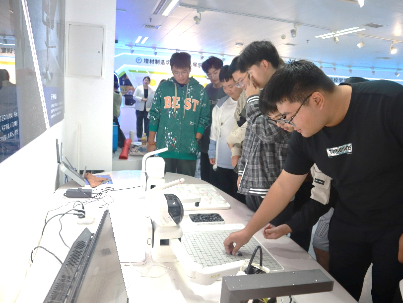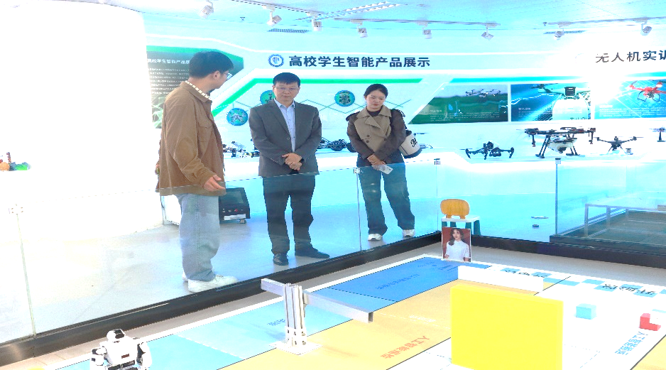 此次入学专业教育活动采取实地参观的形式,河南省产学研人工智能研究院黎经理对自动化创新班师生的到来表示热烈欢迎,黎经理首先介绍了智能控制技术的应用及发展现状,详细介绍了关于展览馆建设历程、特色实训室。随后,带领员工参观了人工智能科普教育基地,先后对智能机器人展区、智慧校园展区增材制造展区、高校成果展区的智慧节能配电系统、智能消防系统、校园智能饮水系统、智能农业系统、智能互动实训室产品等高科技产品作了详细介绍。在产品体验环节,员工们积极参与体验活动,对于五子棋机器人、做题机器人、VR体验过山车等一系列科技产品产生了浓厚的兴趣。人工智能教研室教师就智能装备技术研发、专业人才培养、产教融合等方面与黎经理进行了深入地交流,并提出了一些建设性的意见。