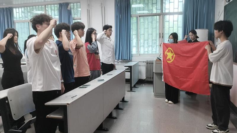 张艺馨带领新发展入团的12名同学面向团旗,庄严宣誓。新团员代表任泽昊和优秀团员代表杨子玄发言,他们表示:习近平总书记指出,入队、入团、入党,是青年追求政治进步的“人生三部曲”。作为共青团员,要学先锋榜样、向优秀看齐,行稳致远。吴彦生向新发展团员提出了殷切的希望和要求:第一,要坚定理想信念;第二,要做到德才兼备;第三,要发挥模范作用。希望大家时刻以团员标准要求自己,认真接受政治训练、加强政治锻造、追求政治进步,积极向党组织靠拢,以成长为一名合格的共产党员为目标、为光荣,努力成为社会主义事业的合格建设者和可靠接班人,在中国式现代化建设的新征程上挺膺担当。