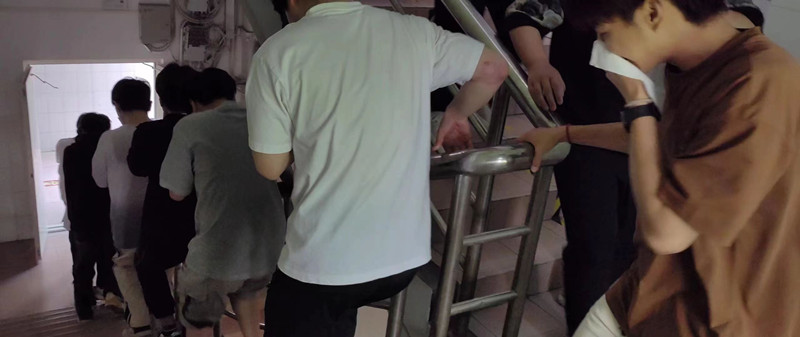 活动伊始,为确保同学们的人身安全及活动安全有序开展,全体楼层长、员工会生活部干事全部参与组织此次活动。全体员工在楼层长的指挥下,紧张而有序地开始疏散,所有人员保持安静、压低身体、用湿毛巾捂住口鼻、快速有序地向就近的楼梯口疏散。3号楼和4号楼员工疏散至操场空旷处,2号楼和8号楼同学疏散至教学楼广场空旷处。活动最后,各宿舍长迅速清点本宿舍员工人数,确保无一人遗漏。