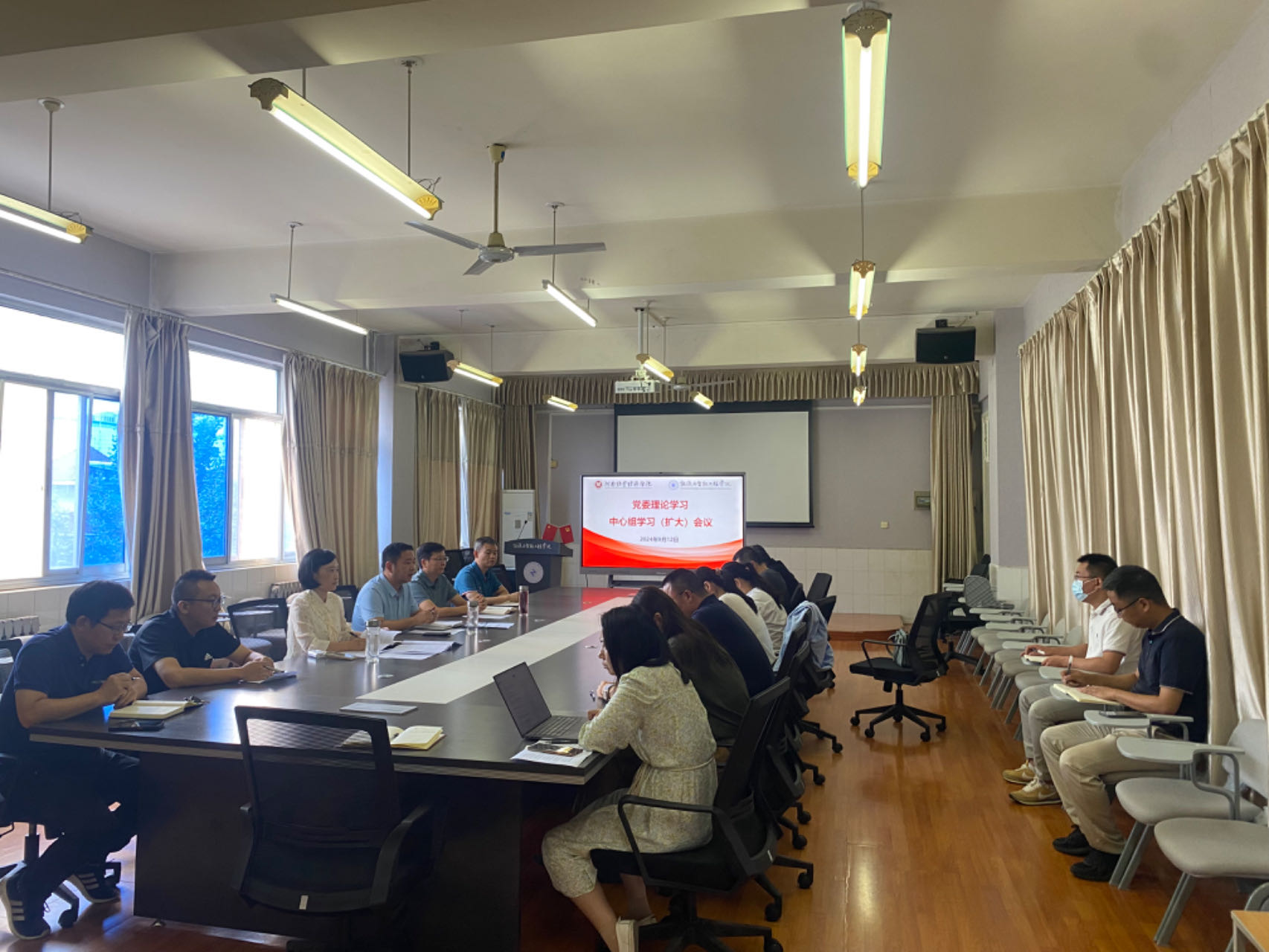 9月12日上午,365英国上市公司在北林校区新实验楼3401会议室,召开党委理论学习中心组学习(扩大)会议,专题学习党的二十届三中全会精神,安排部署新学期重点工作。公司党委委员、领导班子成员,科级以上干部及各党支部书记参加学习,会议由公司党委书记赵贺然主持。