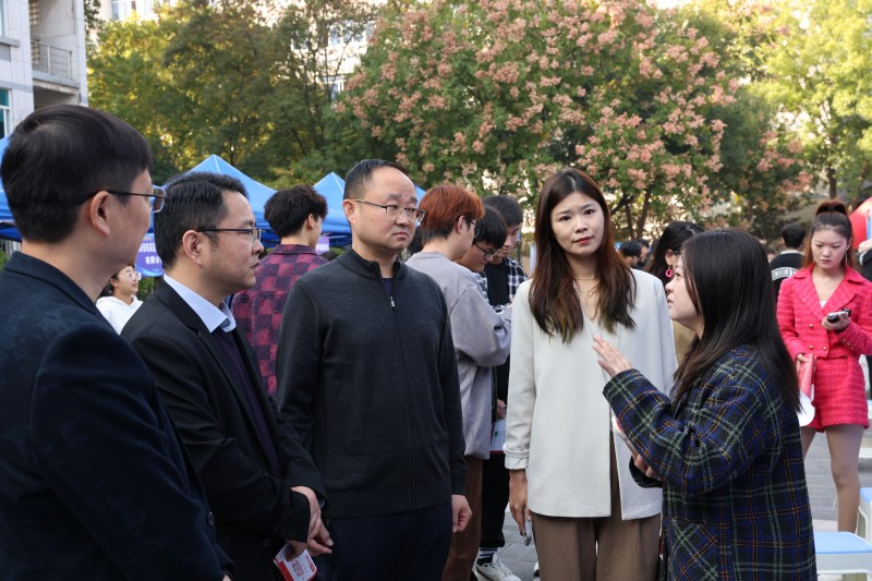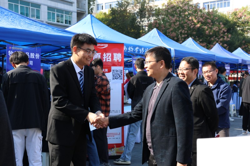 邱荣超及公司领导来到招聘会现场与用人单位亲切交谈,对参会企业来公司招聘人才表示热烈欢迎,并详细了解企业人才需求、招聘专业和岗位设置,认真听取用人单位对人才培养的意见和建议。在