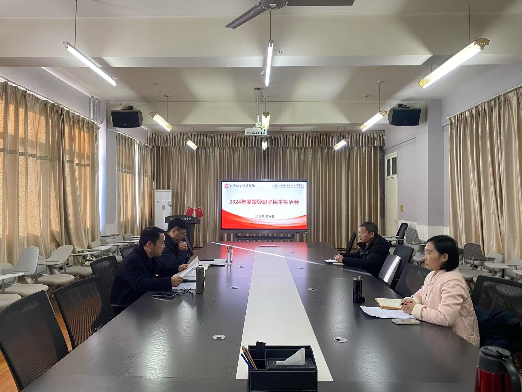 会上,赵贺然首先代表领导班子总结了学习贯彻习近平新时代中国特色社会主义思想主题教育以来有关民主生活会整改问题及巡察整改落实情况、对照“四个带头”和典型案例查摆发现的突出问题、明确了下一步努力方向及整改措施。随后,班子成员紧扣主题,结合实际工作,逐项对照四个方面深入查摆问题、剖析原因,提出整改措施。最后,班子成员之间开展了严肃认真的批评与自我批评,达到了坚持真理、统一思想、改进作风的目的。