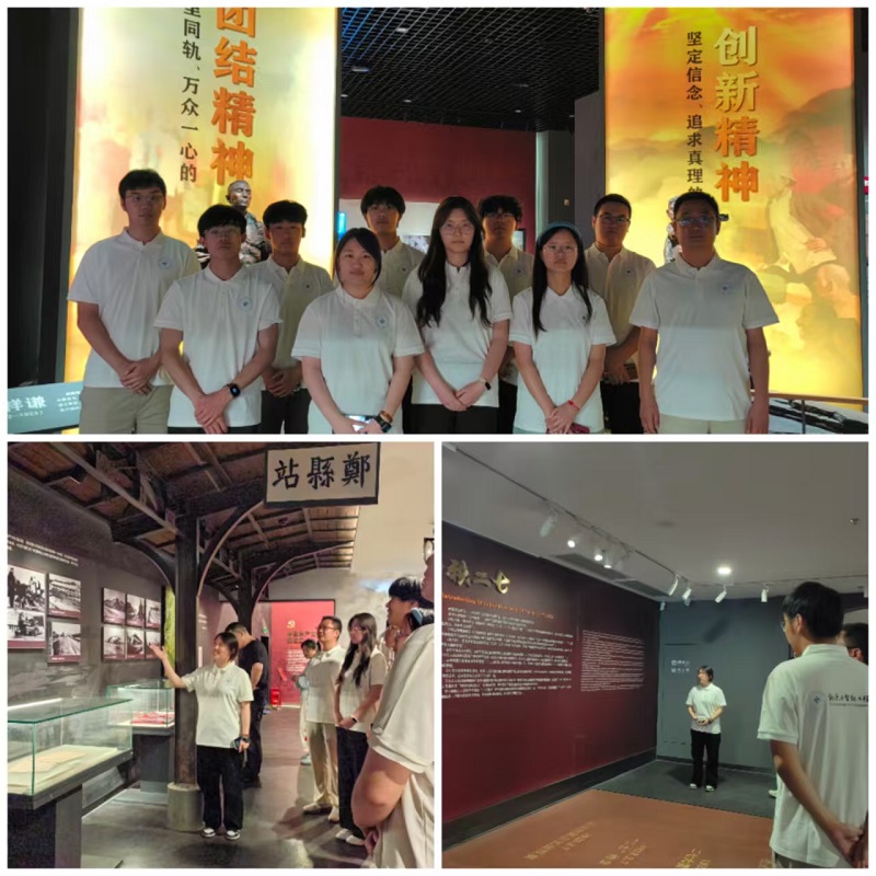二七纪念堂是为纪念1923年京汉铁路工人大罢工中牺牲的烈士而建,是新中国重要的革命历史纪念地之一。在指导老师带领下,社会实践队依次参观了“铁路修建”“工人运动”“血祭京汉”“精神永存”等主题展厅。团队成员通过实地调研、史料演讲、视频制作等方式,了解“二七精神”,传承“二七精神”,宣扬“二七精神”。通过珍贵的历史照片、实物展陈和沉浸式影像资料,大家深入了解了京汉铁路工人在中国共产党领导下争取自由与权利的壮烈斗争,深刻体会到林祥谦、施洋等烈士“头可断,血可流,工不可复”的坚定信念。