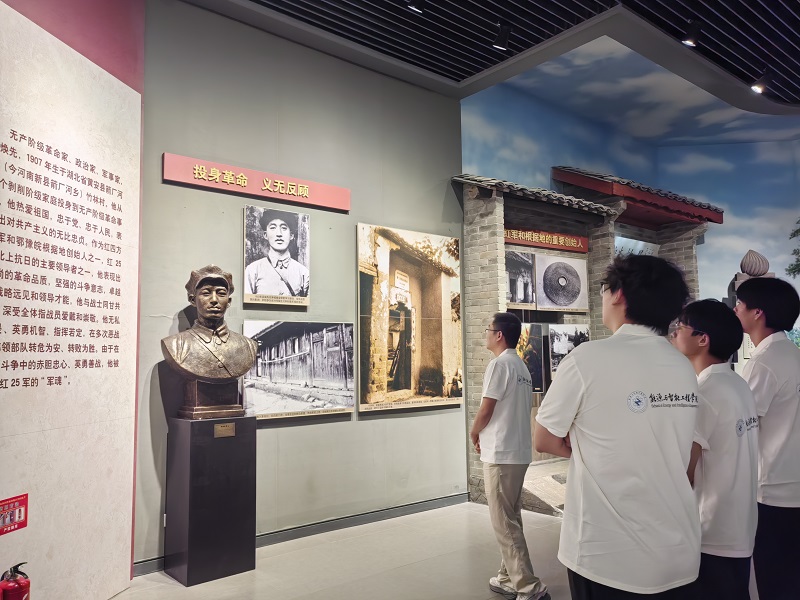 开启实践之前,同学们在老师的指导下,深入学习了吉鸿昌、杨靖宇、吴焕先、叶成焕、彭雪枫、焦裕禄等革命先辈的感人事迹,并准备了演讲课件和视频,为现场的深入实践调研做好了充分的准备。7月2日上午,实践队的师生怀着崇敬的心情前往中原英烈纪念馆和郑州烈士陵园。在中原英烈纪念馆,实践队的同学们现场讲解、感悟了英烈们的伟大精神,参观了工人运动、土地革命等主题展厅。在焦裕禄同志纪念馆,同学们瞻仰着“焦桐”的照片,伫立良久、深受触动,大家吟诵着习近平总书记的词作《念奴娇·追思焦裕禄》,感悟着焦书记带领兰考县人民抗风沙、排内涝、治盐碱,战天斗地,奋力改变兰考贫困面貌的感人事迹。最后,师生们在革命先烈纪念碑前整齐列队,向革命先烈肃立默哀、敬献花篮并缓步绕行瞻仰纪念碑,寄托深切哀思。