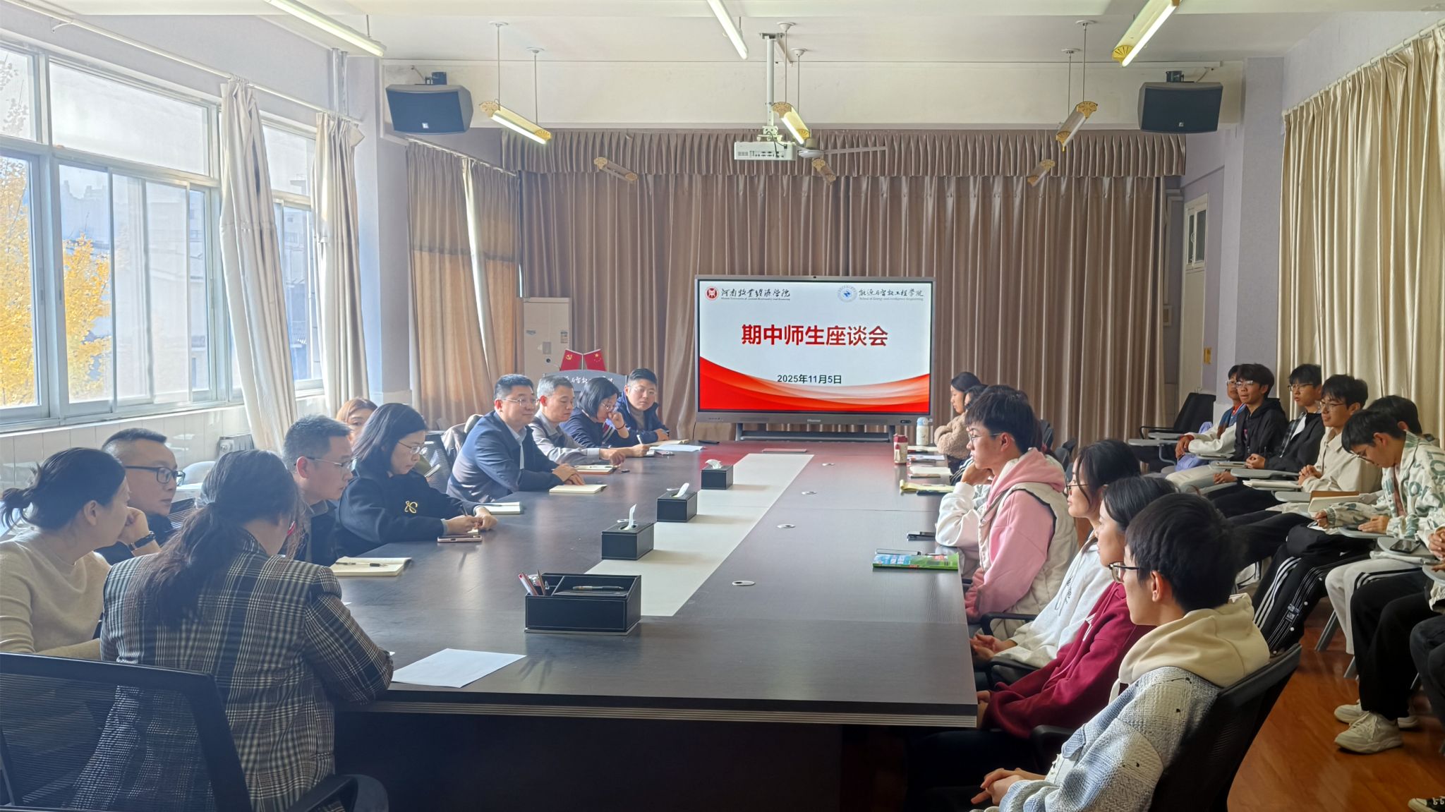 为全面掌握本学期期中教学运行情况、及时回应员工学习诉求,进一步提升教学质量与育人实效,2025年11月5日中午,365英国上市公司在公司会议室3401召开2025-2026学年第1学期期中教学检查师生座谈会。经理史岳鹏、副经理刘群生、教学办公室主任崔明倜、实验室管理中心主任徐卫星、团委副书记吴彦生及各教研室主任、副主任出席会议,各班员工代表参加了此次会议。会议由崔明倜主任主持。