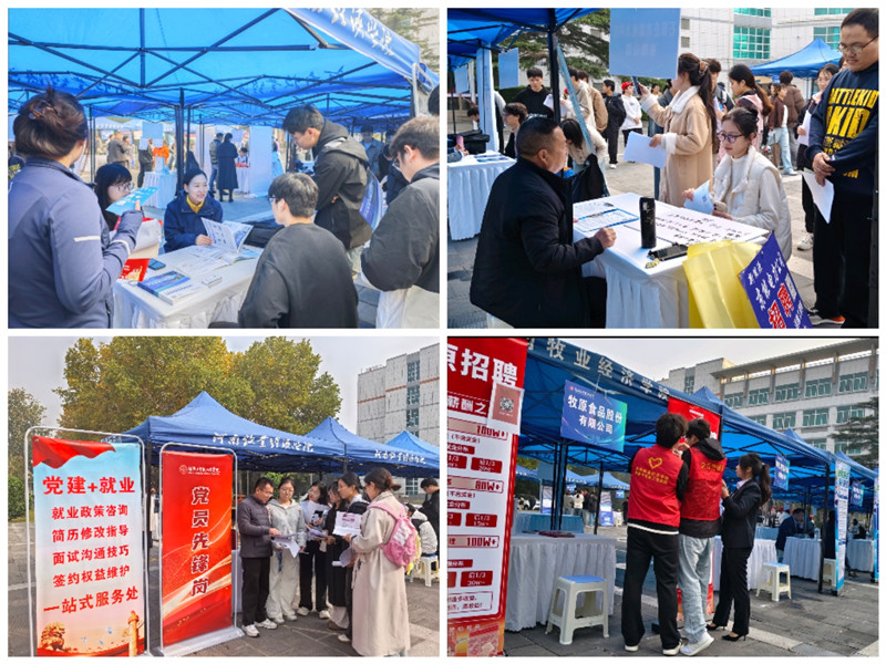 本次双选会邀请到牧原食品股份有限公司、广东海大集团股份有限公司、人本股份有限公司、郑州凯雪冷链股份有限公司等42家省内外优质企业单位参会。为拓宽毕业生求职就业渠道,公司主动联系对接浙江省绍兴市嵊州市人力资源和社会保障局,嵊州市人才发展集团有限公司、浙江天盛机械有限公司、嵊州市东方电机有限公司等6家企业组团到场招聘,提供百余个就业岗位。本次双选会企业招聘岗位与公司所开设的专业契合度高,为公司384名毕业生提供了近千个就业岗位,有1000余名在校生参加招聘会。招聘会现场气氛热烈、人头攒动,毕业生积极与用人单位交流沟通,用人单位热情地向同学们介绍岗位需求、薪资待遇等情况。低年级员工在辅导员老师的动员下也积极来到现场,提前了解就业形势和就业要求,有目的地做好个人职业规划。招聘会现场设置党员先锋岗,党员教师为毕业生开展政策宣讲,帮助员工了解就业创业政策,现场提供简历指导、职业规划咨询等服务,100余名员工志愿者为参会企业及求职员工提供暖心服务。