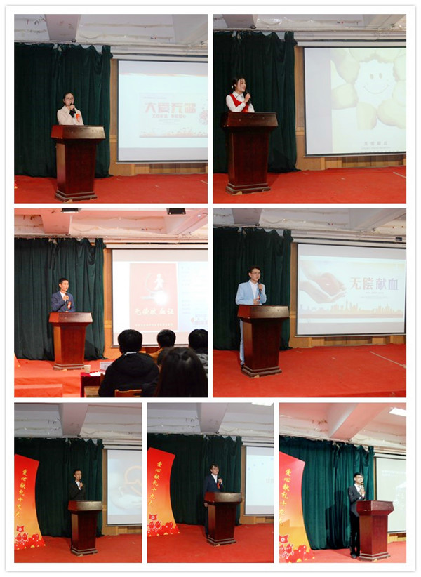 在欢快的音乐,豆帅楠、张贲茂、刘一洋、刘铭锦、胡晓东、洪诗雨、任一鸣等7名选手闪亮登场,展开了精彩角逐。“血荒”、“爱”、“生命”、“奉献”等词语在演讲中多次被提到,选手们饱含激情地讲述了自己或身边人献血工作经历和温情故事,颂扬了无偿献血者的无私奉献精神。“我不认识你,你也不了解我,但,在你危机时刻我愿无条件的用我的鲜血与你相交融,救你性命,这,难道不算是至亲之举吗?”是啊,未曾谋面,未必无缘,我们是未曾相见的亲人,献血救人、功德无量,这才无偿献血的伟大所在。选手们精彩表演赢得了大家的阵阵掌声,优美的音乐、精美的背景,或感人或激昂或铿锵的语言力量,一场以爱的主题的视听盛宴感动、震撼着在场的每一位观众。