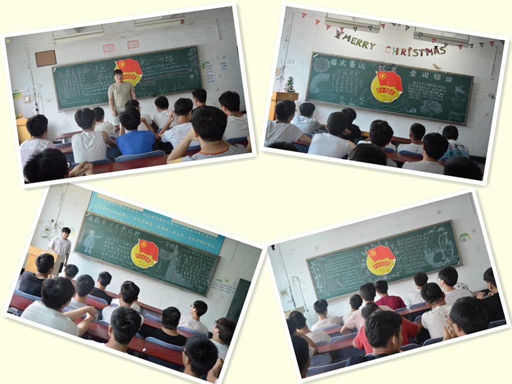 各班通过设计板报,观看视频,互动问答,交流学习等方式深入学习了解“我最喜欢的习近平总书记的一句话”,团课伊始,17能动01班的团支书带领同学们朗读由本班同学推选出的最喜爱的习近平总书记的十句话:“不忘初心、牢记使命”、“幸福是奋斗出来的”等激励同学们奋进的座右铭,同学们声情并茂,铿锵有力的朗读响彻整个教室。17机械班和太阳能班团支书组织同学们在多媒体教室观看央视网推出的纪录片《习近平治国方略:中国这五年》,同学们纷纷表示,作为最富活力、最具创造力的青年群体,更应勇立潮头,做先锋,以青春之国家,绽放青春力量,无论何时何地,立志总不迟,从今天开始,从现在开始,做一个有崇高理想的人。17能动02和17空调01班的同学们非常有默契地选择了“绿水青山就是金山银山”这句话;能动2班的团支书王利华同学讲述了自己家乡这些年来的变化,从稀稀落落到尺树寸泓,他感叹着自己的家乡在不断的发展,亲人们的生活环境在不断的改善,绿水青山可以源源不断的提供金山银山。