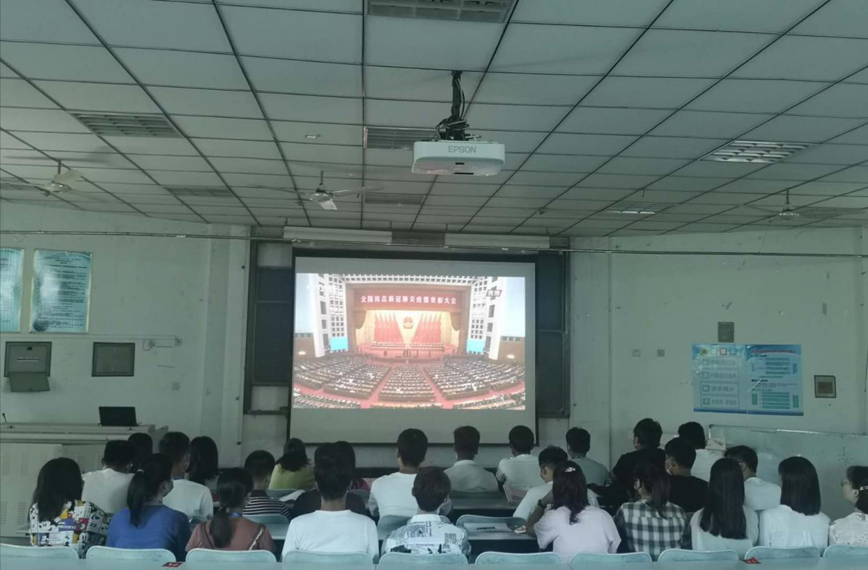 2020年9月8日上午,全国抗击新冠肺炎疫情表彰大会在北京人民大会堂隆重举行。中共中央总书记、国家主席、中央军委主席习近平向国家勋章和国家荣誉称号获得者颁授勋章奖章并发表重要讲话。9月8日上午,公司员工党支部积极组织员工党员在教学楼A100观看学习。9月8日-11日,公司员工会、集思社、笃学社组织全体员工通过电视、网络、手机等方式观看全国抗击新冠肺炎疫情表彰大会直播及回放。