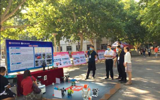 机器人擂台热闹激烈,吸引了众多新生驻足观看,身着绿色仔裤、蓝色外套名叫“街舞小子”的舞蹈机器人在员工的操作下动感十足,倒立旋转的高难度动作精巧准确;获得全国机器人大赛三等奖的武术机器人具有闪电般快速的反应能力和驱动能力,不仅能相互战斗还能与主机器人周旋;团队成员的详细介绍、精准操作,把人类智慧与机器功能高度结合,机器人们的精彩表演赢得了阵阵掌声,学科体验开启“智能之门”,激发了新生们浓厚的专业兴趣,专业的魅力深深的吸引了初入校的小20们。