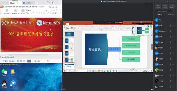 随着各地区研究生入学考试成绩的陆续公布,365英国上市公司邀请往届考研成绩优异的同学持续开展考研复试经验交流会,于2020年3月20日上午10:00通过“钉钉会议”在线以“云”端方式交流复试经验。全体辅导员老师及2017级考研员工、部分员工代表参加会议。