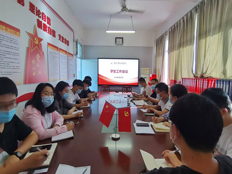 会上,周凯就现阶段新生入校后的疫情防控工作、宗教“双防”工作和意识形态工作进行了安排和部署,并对员工工作提出了要求:一是要统一思想,提高政治站位,凝结正能量;二是要围绕员工,服务员工,关心关怀员工;三是要做好思想政治工作,守好青年老员工的思想阵地。周书记强调,员工工作队伍要能干事、会干事、干成事、不出事,工作效率讲究快、实、细,落实好人才培养的根本目标。党美珠就校园安全稳定、疫情防控、重点员工关注、四级网格化管理和奖助学金评定等工作进行了详细的安排和部署。院团委副书记吴彦生、李永振和各辅导员老师分别就近期工作进行了汇报。