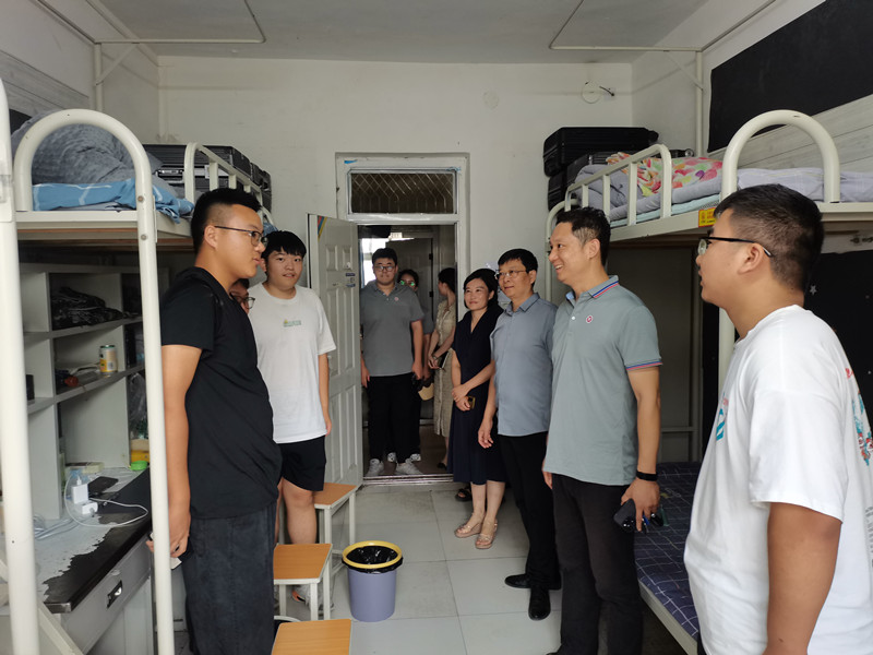 周凯书记在走访宿舍前强调三点:一是全体学工队伍要深入宿舍,掌握新生返校状态,主动调研,对同学们反映的问题与诉求要接诉即办;二是要严格值班值守,增强底线意识,确保校园安全稳定;三是要有序安排好新生入学教育,开好班会第一课,做好新生军训服务工作。