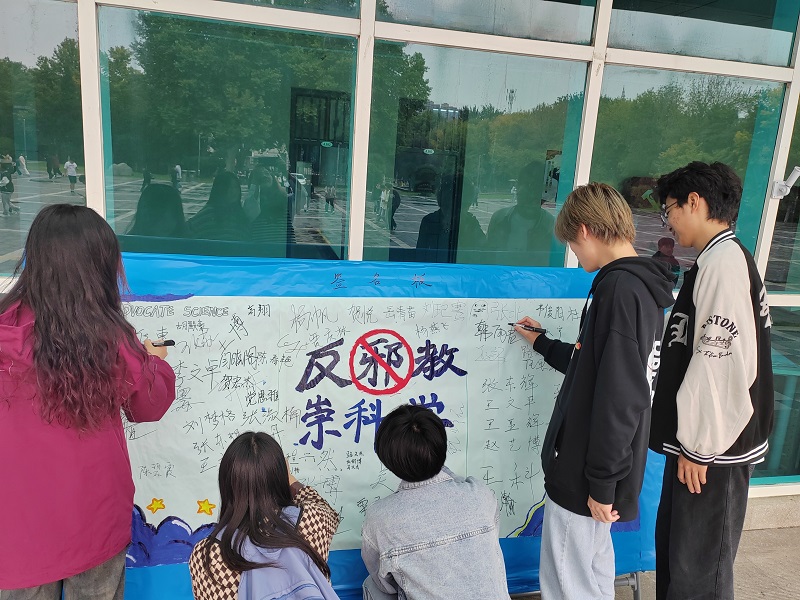 本次活动由公司心教部和宣传部的同学设计绘制展板,并在各班级群进行宣传。活动过程中,同学们郑重有序地在“反邪教 崇科学”展板上签名,向邪教说“不”。用实际行动进一步增强同学们的反邪意识,坚定信念认真学习科学文化知识,弘扬科学精神。