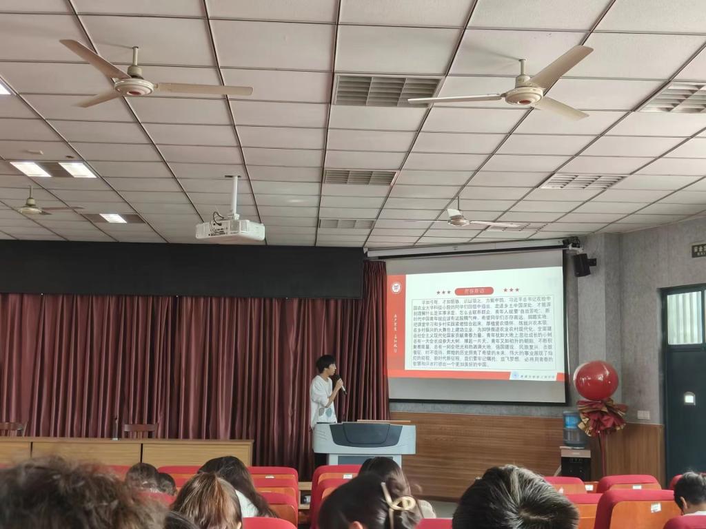 会上,四位同学结合自身经历,从思想道德、专业学业、科技竞赛、工作成绩、创新能力、社会实践等方面,为学弟学妹们分享了学习经验和成长感悟。首先,张明坤同学向大家讲解了自己在大学期间的心路历程,一路追风赶月,许有风雨相随,但他从不轻言放弃,因为他相信奋斗的尽头始终矗立着一座座春山;接下来,校团委老员工融媒体中心负责人李怡菲同学作以如何让自己的老员工活更有意义为出发点,勉励新生砥砺奋进,追光前行,成为更好的自己;然后,员工会主席张亚宁同学以自己的成长经历和感悟引导同学们明确目标,勤学善思,坚定不移听党话、矢志不渝跟党走,坚定“四个自信”,增强“四个意识”,做到“两个维护”,努力成长为堪当民族复兴重任的时代新人;最后,龚亚军同学分享了自己的青春感想,并给与新生三个具体的建议:一要充分利用图书馆来充实自己,拓宽知识面,二要及早确定目标,搞清楚自己真正需要的是什么,在此基础上付出实践,三要认真对待自己的专业,专业无冷热,应该通过学习不断提升自己,追逐梦想,实现理想。