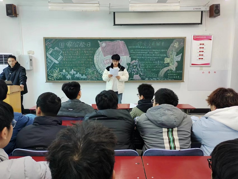 此次团课中,各班团支书号召各班同学应牢记历史使命,勿忘国耻,铭记历史,吾辈自强,要时刻保持清醒状态,在深切缅怀遇难同胞的同时,感受到今天祖国的强大和当下幸福生活的来之不易。作为新时代的青年,我们应该树立和培育正确的价值观念,不断增强社会责任感和历史使命感,自觉肩负起时代赋予的使命与责任,在实现中华民族伟大复兴的新征程中放飞青春梦想。同时,各班团支部围绕宿舍安全、预防冬季传染病、防自然灾害、防范电信网络诈骗、电动车文明使用等内容,向同学做了详细的安全文明主题教育,号召同学们要加强安全防范意识,争做“自身第一责任人”。