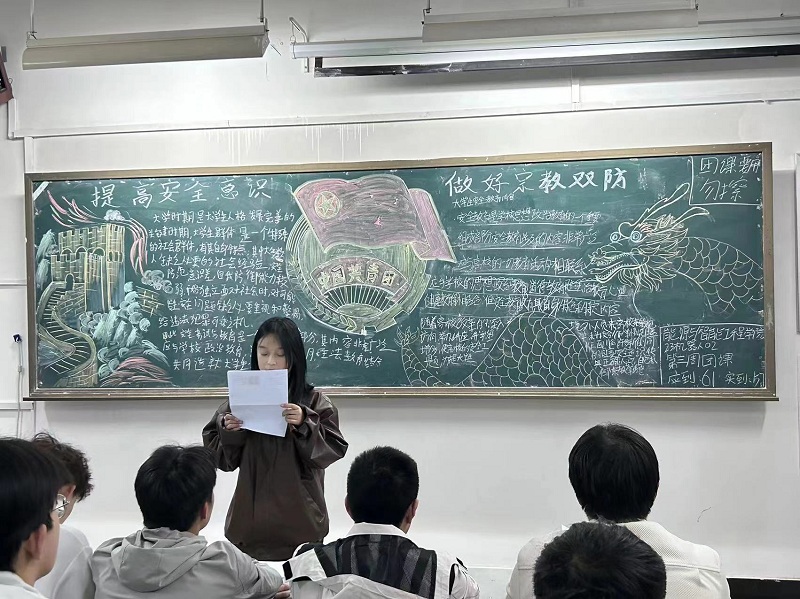 各支部团课上,各支部团支书分别列举了反诈骗、消防自救、文明交通、科学饮食、实验室规范和宗教双防等方面的事例,让员工们对防范措施有了更深入的了解,号召广大团员青年积极参加“老员工安全志愿者服务队”等六个专项志愿服务队,提升自身能力,共建平安校园。各班团支书通过播放一系列安全视频为同学们分析在宿舍生活中发生意外该如何做,普及各类灾害事故预警知识,了解避险基本技巧,从而提升面对灾害风险的防范意识和能力。