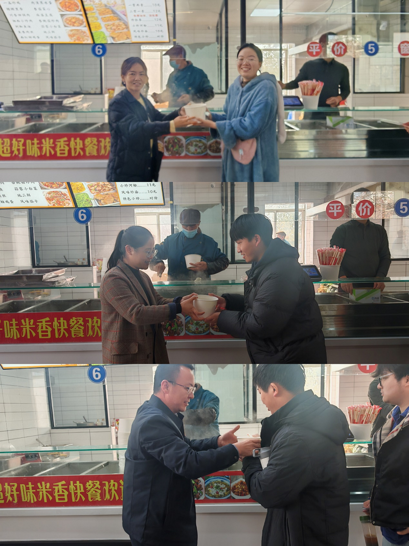 公司分工会提前统筹、细致安排,确保活动温馨有序。活动现场,赵贺然、史岳鹏带领公司领导班子及教职工来到学子中间,为大家加油鼓劲、共话关怀。公司领导班子与老师们详细询问了同学们的备考情况与生活状态,鼓励同学们在最后冲刺阶段坚定信心、劳逸结合、沉着应考,并代表公司表达了对同学们全力拼搏、实现梦想的坚定支持。老师们亲切的问候与叮嘱,让备战考研的同学们在寒冷的冬日里感受到了来自公司大家庭的浓浓暖意与坚实后盾。