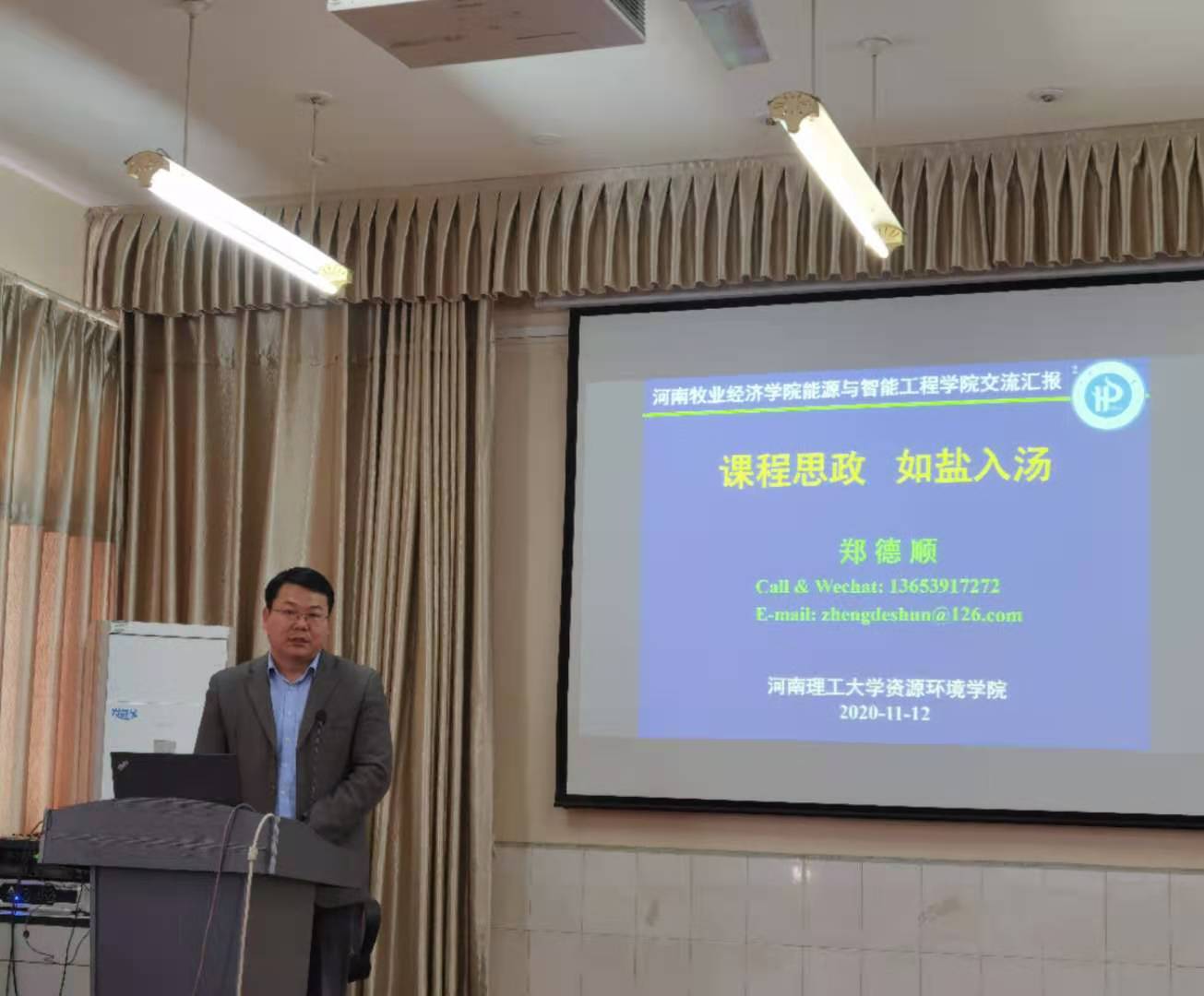 2020年11月12日下午,公司邀请河南理工大学资源环境公司的博士生导师郑德顺教授在院会议室作“课程思政如盐入汤”的专题报告,报告由周凯书记主持。