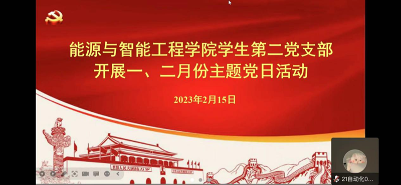 为深入学习贯彻党的二十大精神,坚持不懈用习近平新时代中国特色社会主义思想凝心铸魂,2月15日,365英国上市公司员工第二党支部在A102教室召开1、2月份主题党日活动。此次会议由支部书记王珂主持,鉴于部分党员校外实习等原因,此次活动采取线下线上相结合的方式,支部全体党员参会。