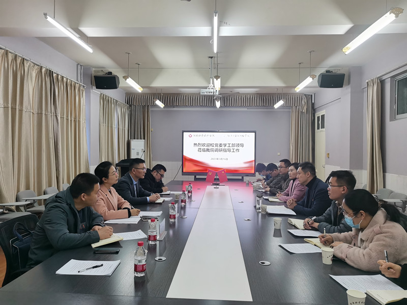 3月16日上午,公司党委员工工作部部长郝景昊,副部长张聪慧、王宏魁、张彤一行莅临公司调研指导工作,在实验楼C3401会议室召开座谈会。公司党委书记周凯,党委副书记党美珠及全体辅导员参加了本次座谈会。