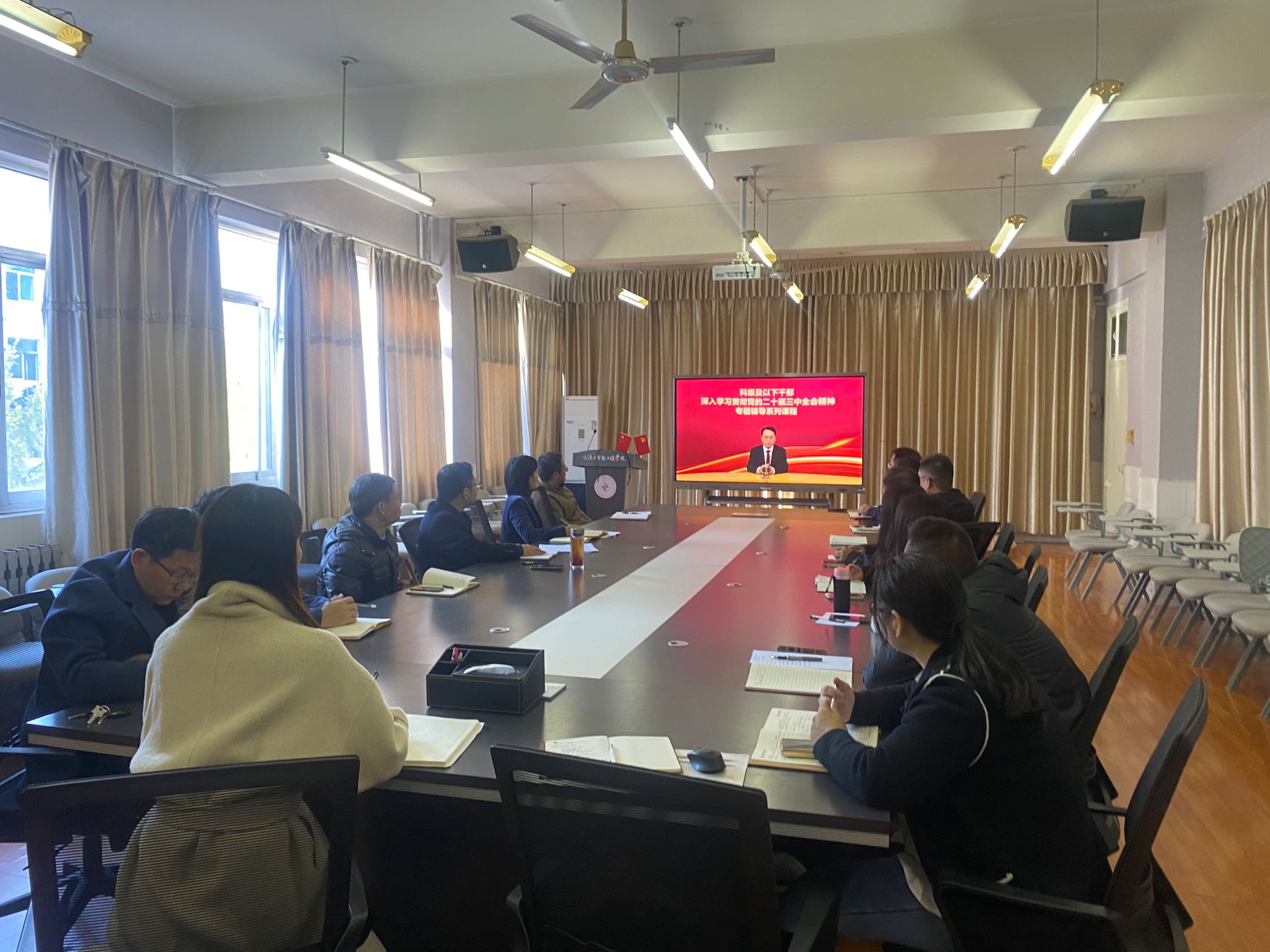 与会党员干部集体学习观看了科级及以下干部深入学习贯彻党的二十届三中全会精神专题辅导系列课程视频。(耿李姗 文/图)