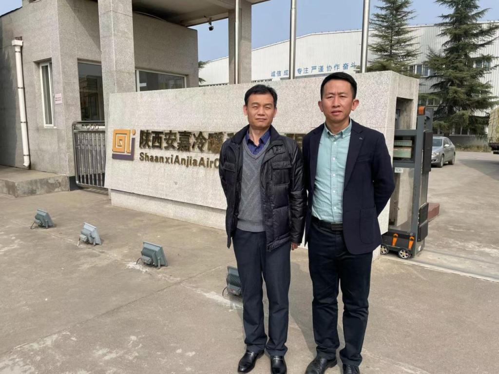在参会期间,刘群生副经理先后与上海协达冷气工程有限公司王路飞工程师、上海汉钟精机股份有限公司制冷事业部经理谢鹏、陕西安嘉冷暖科技有限公司总经理安健等进行访企拓岗相关洽谈,了解企业用人需求。在会议的最后一天,应安健总经理的邀请,刘群生副经理到位于咸阳杨凌示范区的陕西安嘉冷暖科技有限公司工厂参观考察,并进行了深入沟通交流。