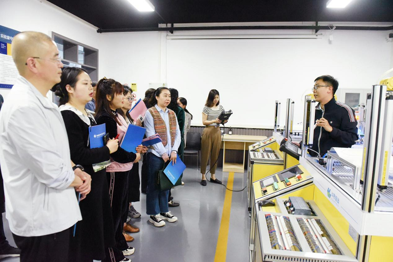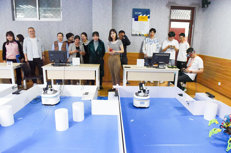 随后,农科路小学教育集团副书记温惊涛一行在公司机器人、机械教研室专业课老师的带领下参观了工业机器人实验室、3D打印实验室、机器人创新实验室、海信中央空调实验室等相关实验室。温惊涛一行被机器人武术擂台、舞蹈机器人、穿越无人机飞行、3D打印等科技内容深深吸引,现场气氛热烈,参观调研的老师们纷纷动手实操并深入讨论交流。