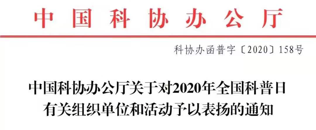 依据《中国科协办公厅关于对2020年全国科普日有关组织单位和活动予以表扬的通知》内容,热烈祝贺河南省科学技术协会、河南省制冷学会等单位被评为2020年全国科普日活动优秀组织单位。