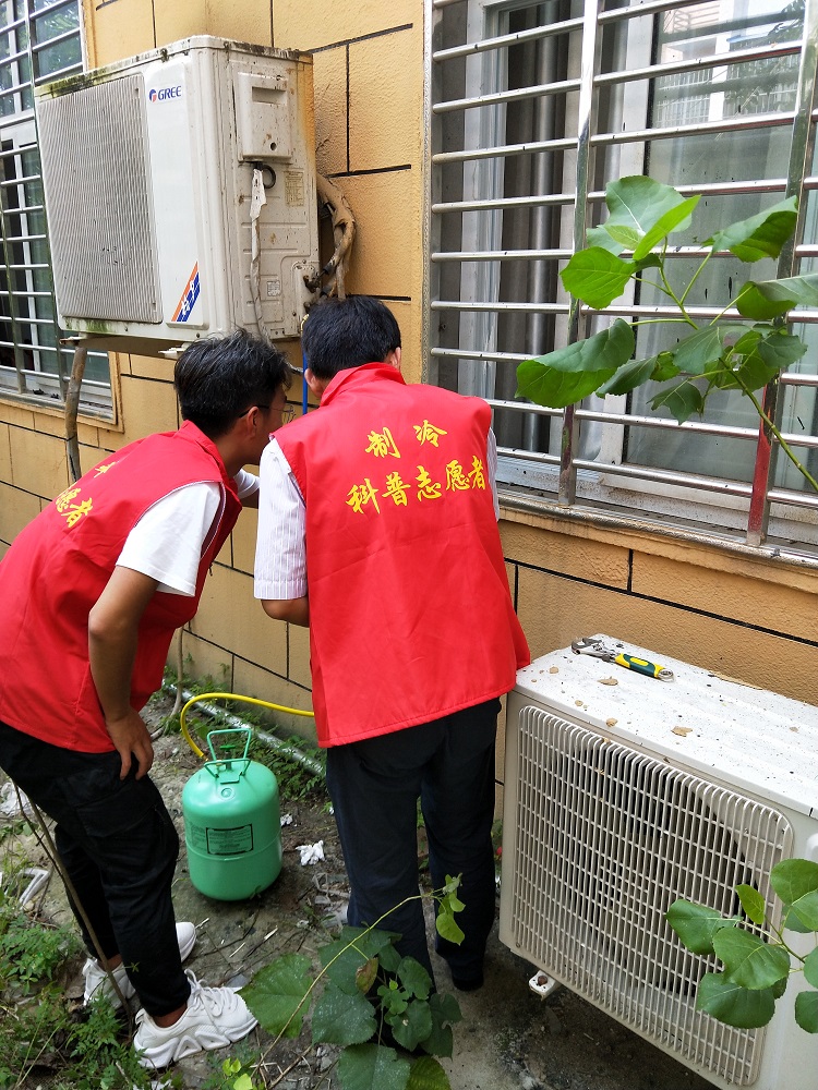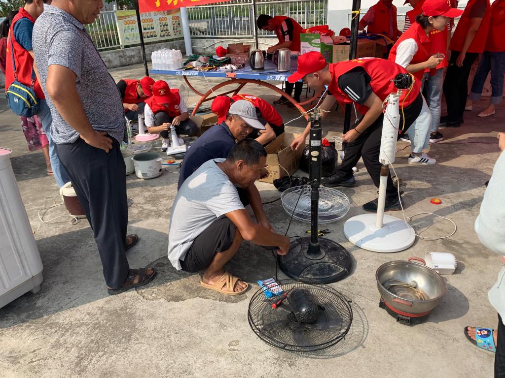 我们对小件家用电器如电风扇集中到村委会大院进行维修,而电冰箱、空调器则分成两个小分队,到村民家里进行维修清洗,并向村民进行电冰箱、空调器科学使用的相关科普。