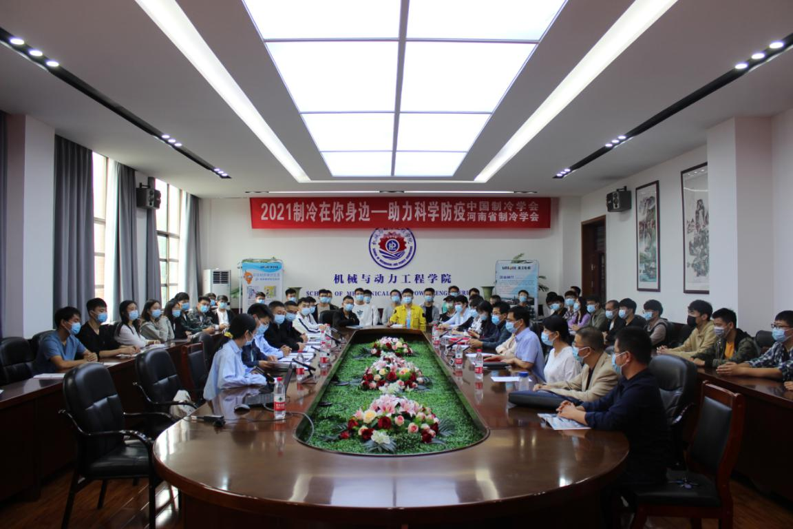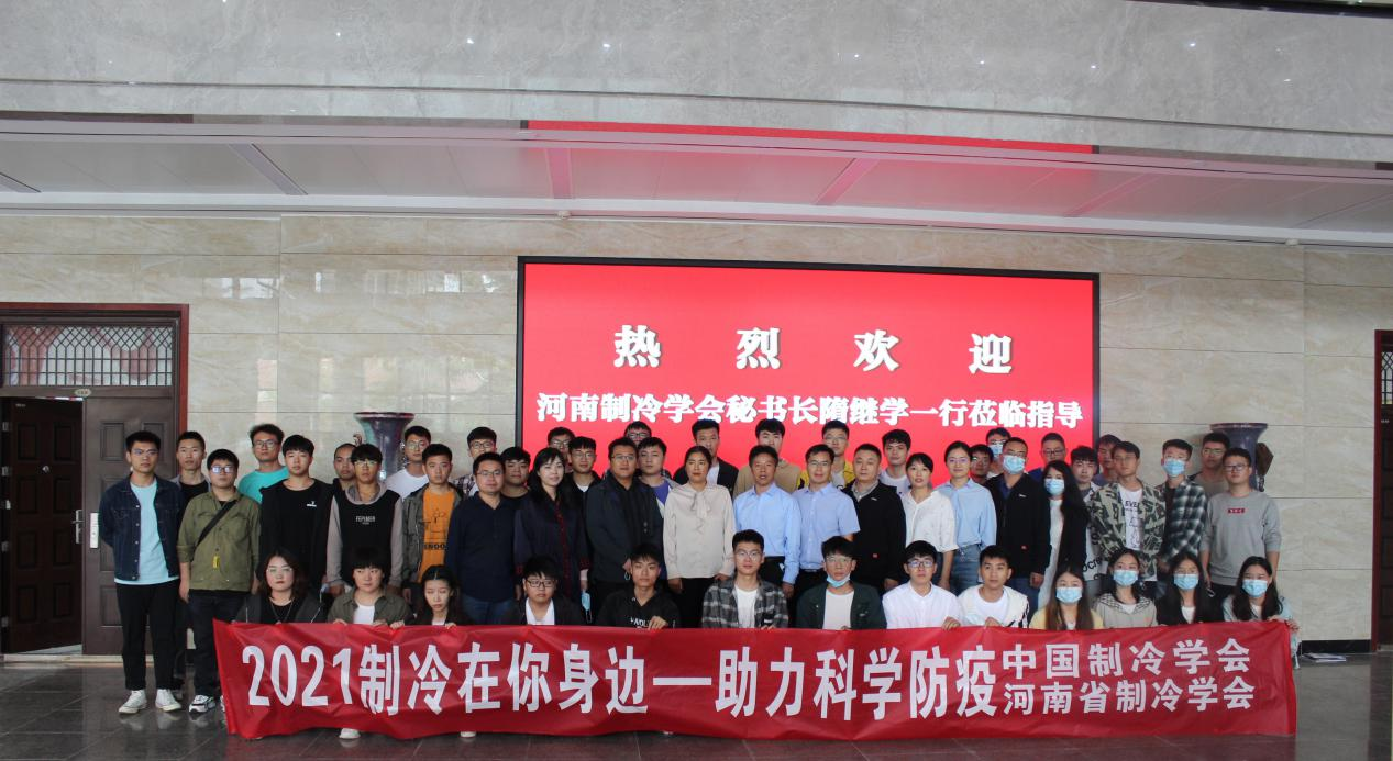 2021年9月27日上午,河南省制冷学会、河南理工大学和美的楼宇科技事业部联合组织开展了以“制冷在你身边 助力科学防疫”为主题的全国科普日活动。河南省制冷学会副理事长兼秘书长隋继学、河南理工大学机械公司党委副书记徐荣梅、河南理工大学机械公司能源与动力工程系党支部书记张安超、机械公司能源与动力工程系副主任梅艳阳、美的楼宇科技事业部河南产品中心市场部经理张栋梁、美的楼宇科技事业部河南产品中心电梯经理何长展、河南省制冷学会办公室副主任黄冰、河南省制冷学会办公室副主任李锡石、河南理工大学能源与动力工程专业团队博士王蕊蕊、郝晓茹、郑海坤以及40余名员工志愿者参加了科普活动启动仪式。