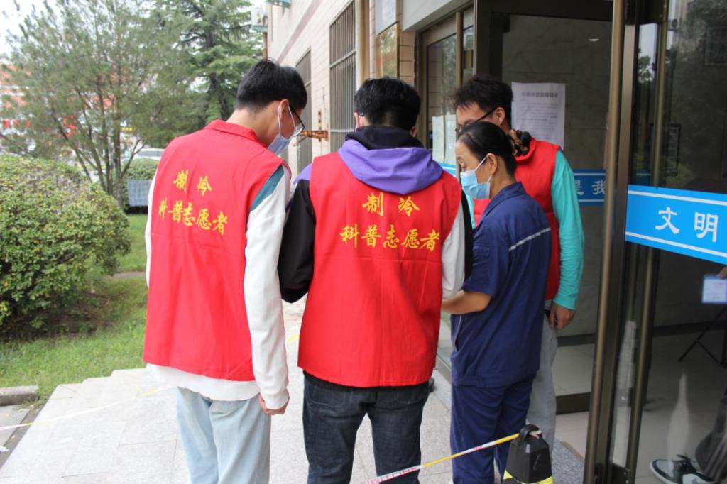 科普讲座结束后,40多名员工志愿者在老师带领下,先后来到河南理工大公司园、校医院、餐厅、宿舍、后勤维修中心等场所进行了科普宣传,分别向老师、员工、员工等分发了《制冷与健康》、《科学使用电冰箱》、《家用空调自助清洗全攻略》、《电梯逃生手册》等科普资料,使更多的人懂科普、爱科学。