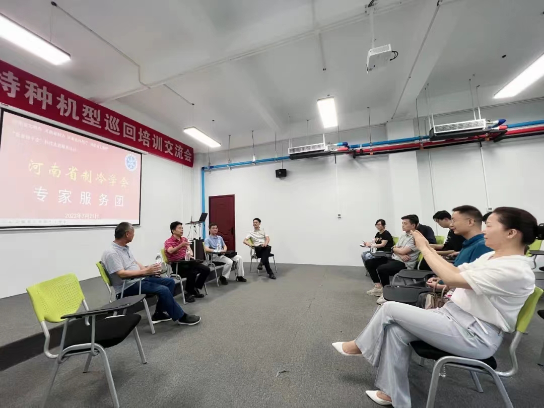 在座谈交流过程中,董事长朱正岩向隋继学一行介绍了公司基本情况以及自主研发的最新空调热泵产品“热水湾-开式一体机”。刘群生副秘书长介绍了学会的基本情况,科宣部部长段欢欢介绍了2022年中国郑州制冷空调及通风展览会的筹备情况,学会办公室主任李锡石介绍了中国制冷学会工程能力评价工作在河南省的开展情况。