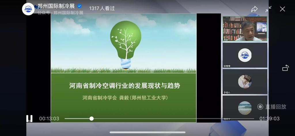 2022年7月15日,由河南省制冷学会、郑州国际制冷展组委会联合举办的“百会链千企”系列讲座——《河南省制冷空调行业现状与发展》顺利开播。学会特别邀请郑州轻工业大学原副董事长、河南省制冷学会理事长龚毅教授线上开讲,学会秘书长隋继学教授主持直播会。本次直播会800多人次在线观看,500多人次回放观看,总计达1300多次观看。