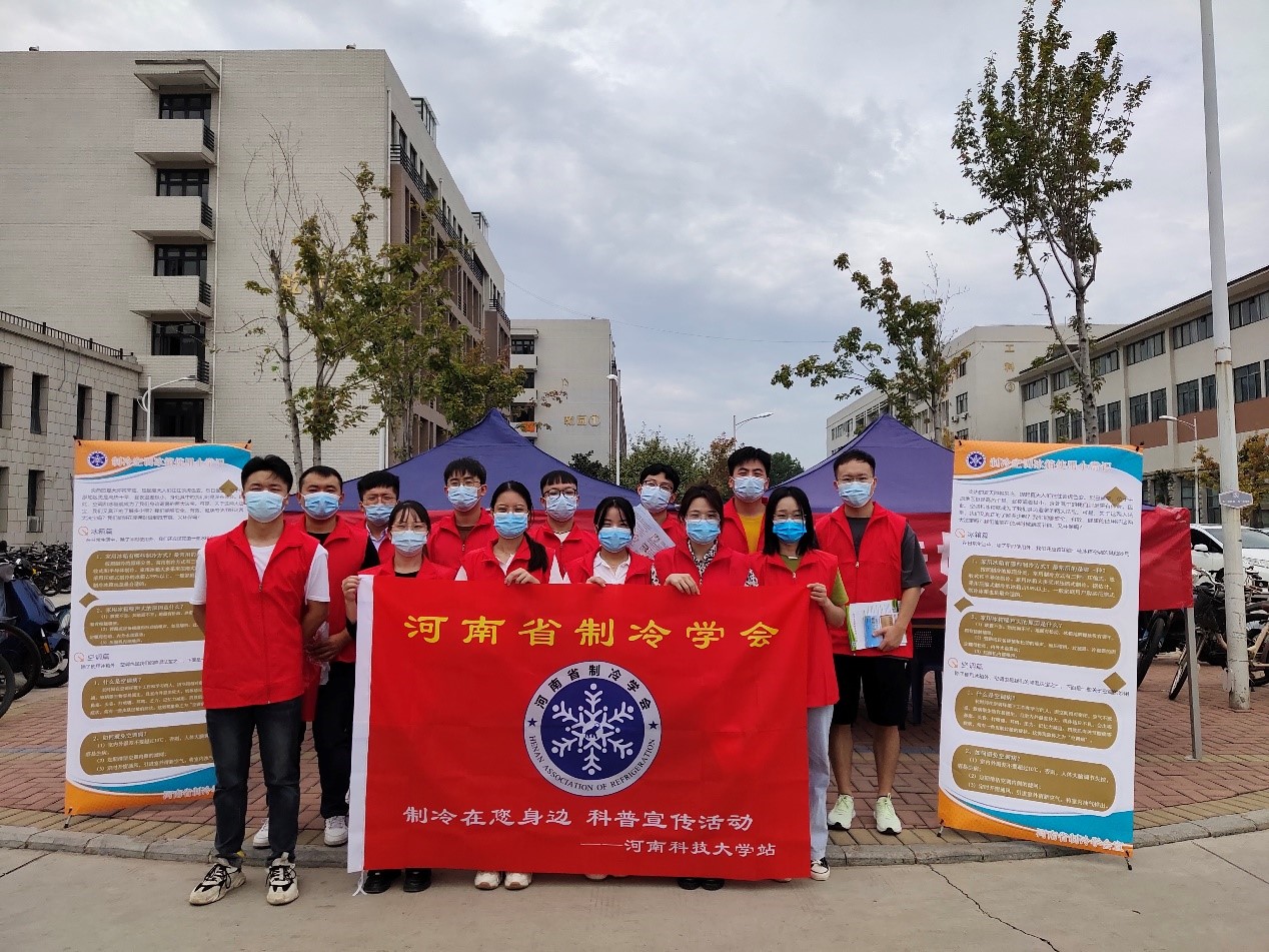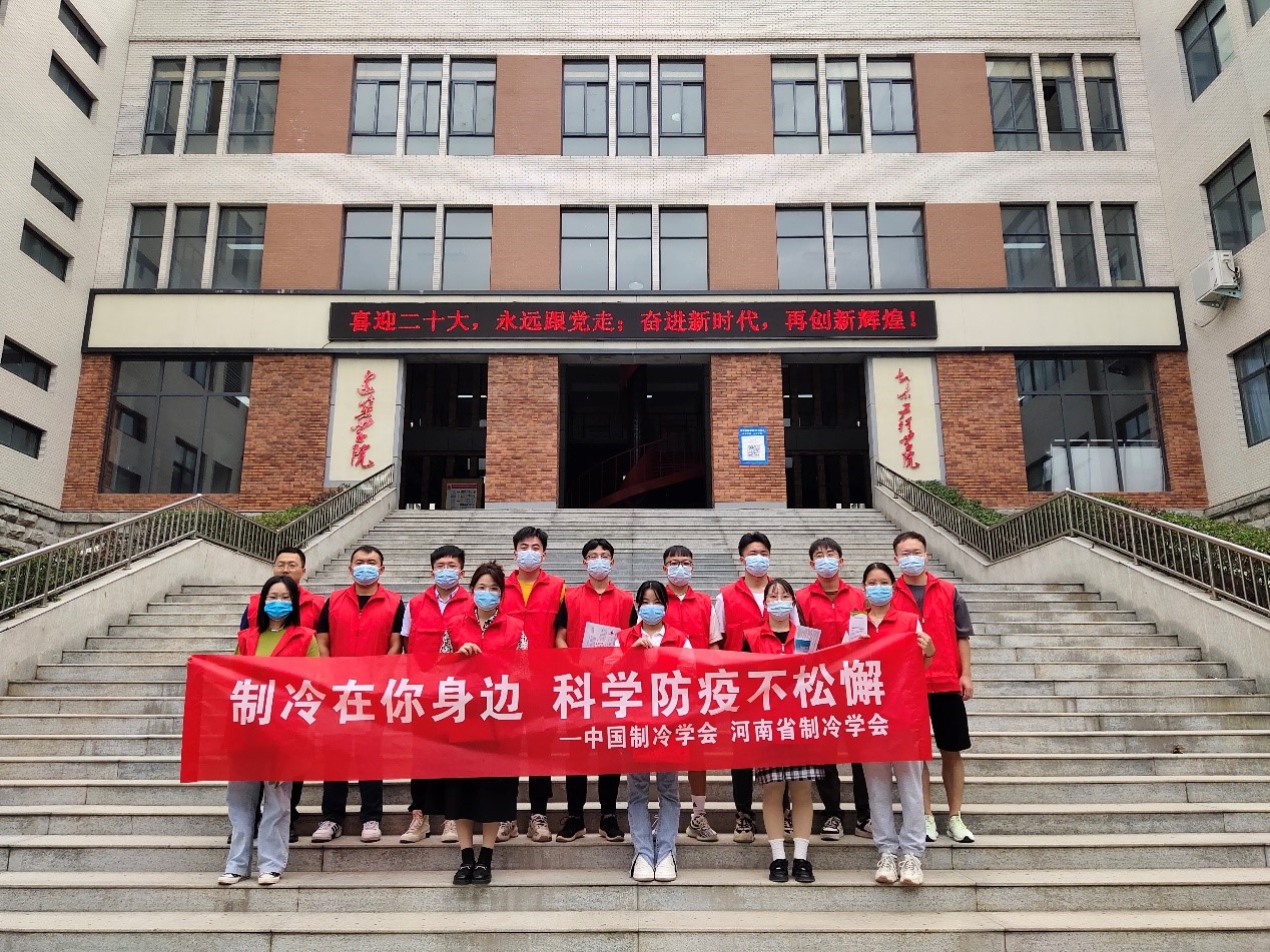 同心向党盼盛会,携手奋进启新程。在党的二十大即将胜利召开之际,为进一步弘扬科学精神,普及科学制冷知识,2022年9月30日上午,河南省制冷学会联合河南科技大学土木建筑公司和车辆与交通公司在校园内开展了以“制冷在你身边,科学防疫不松懈”为主题的制冷科普系列活动。学会专家、科普志愿工作者以及员工志愿者共70余人参与了此次活动。
