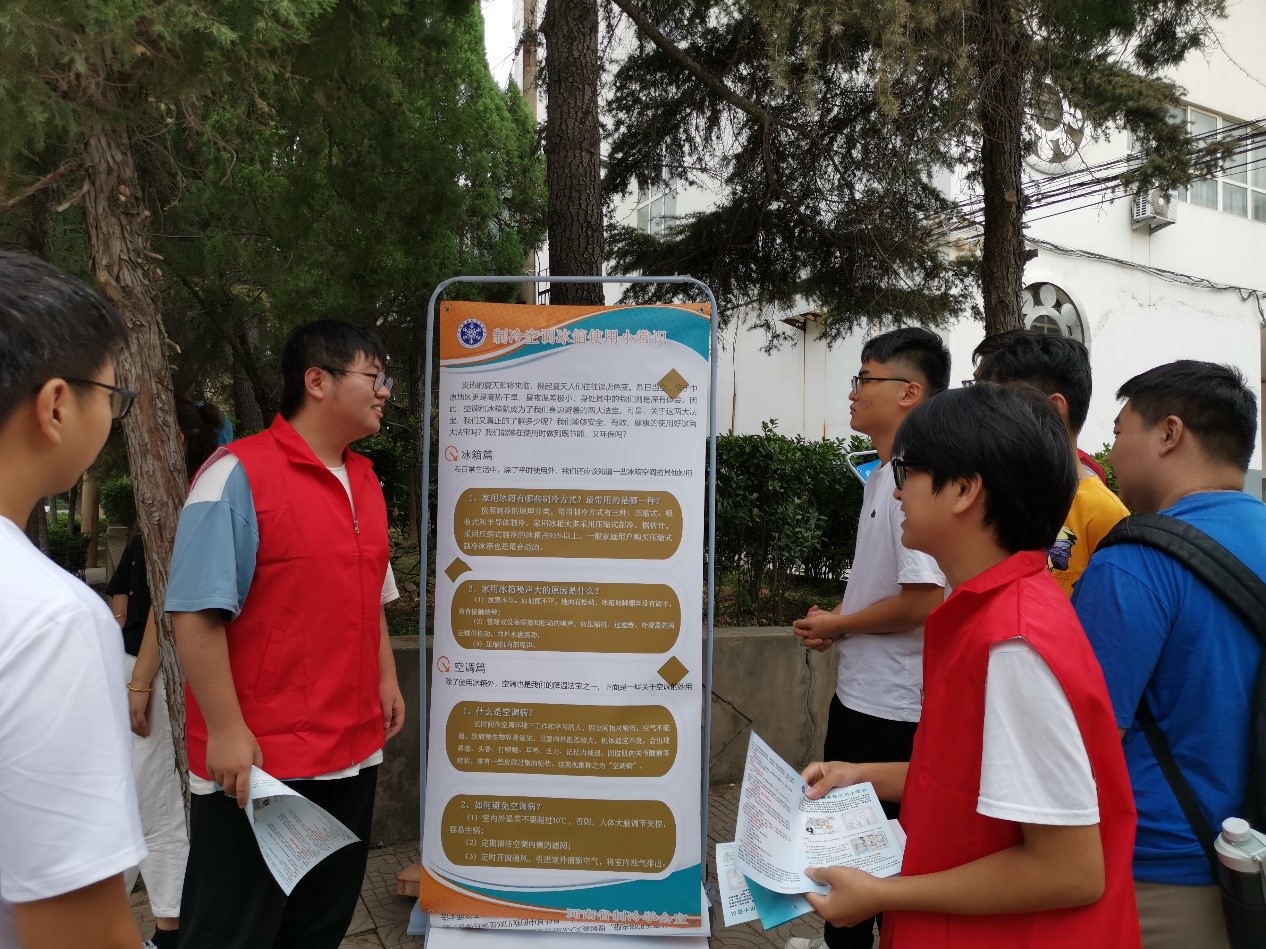 活动在专家老师们的精心筹划下,有序推动,稳步开展。活动中,专家教授进行现场科普宣讲,志愿者发放制冷空调与冰箱高效健康使用的宣传单并讲解,活动普及师生数达1000人次。志愿者们纷纷表示在活动中收获颇多,以后将继续努力发挥自身专业优势,用实际行动践行“我为群众办实事”。
