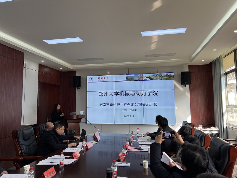 王定标书记首先介绍了郑州大学机械与动力工程公司的基本情况,并详细介绍了团队力量、科研成果、产学研合作项目等。河南三联科技工程有限公司技术总监何吉祥介绍了公司的基本情况,并就公司的业务范围、业务成果、技术特点、技术需求、人才需求等方面做了具体说明。