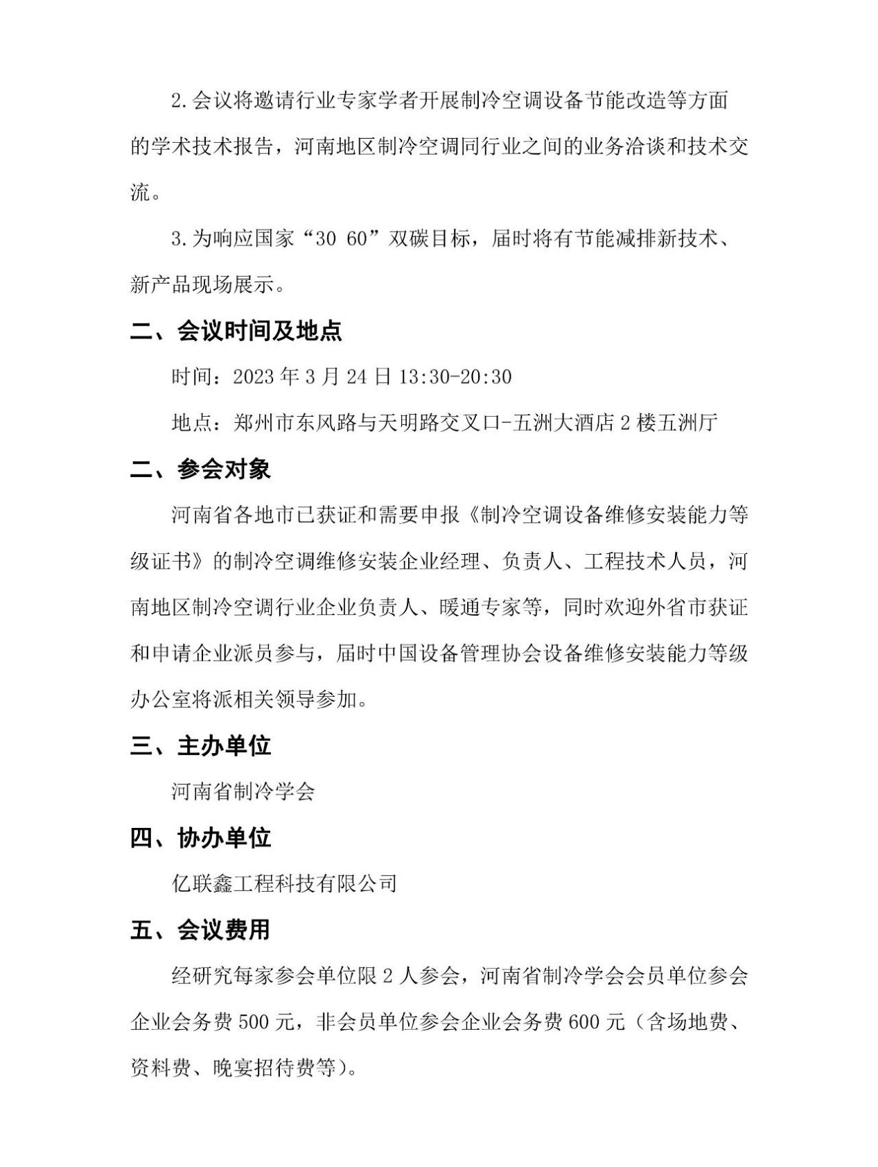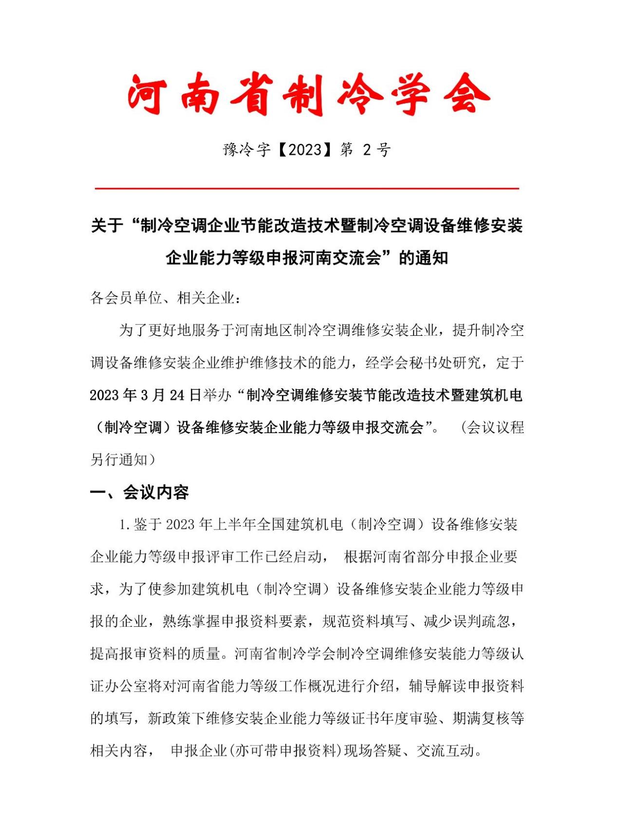 关于“制冷空调企业节能改造技术暨制冷空调设备维修安装企业能力等级申报河南交流会”的通知