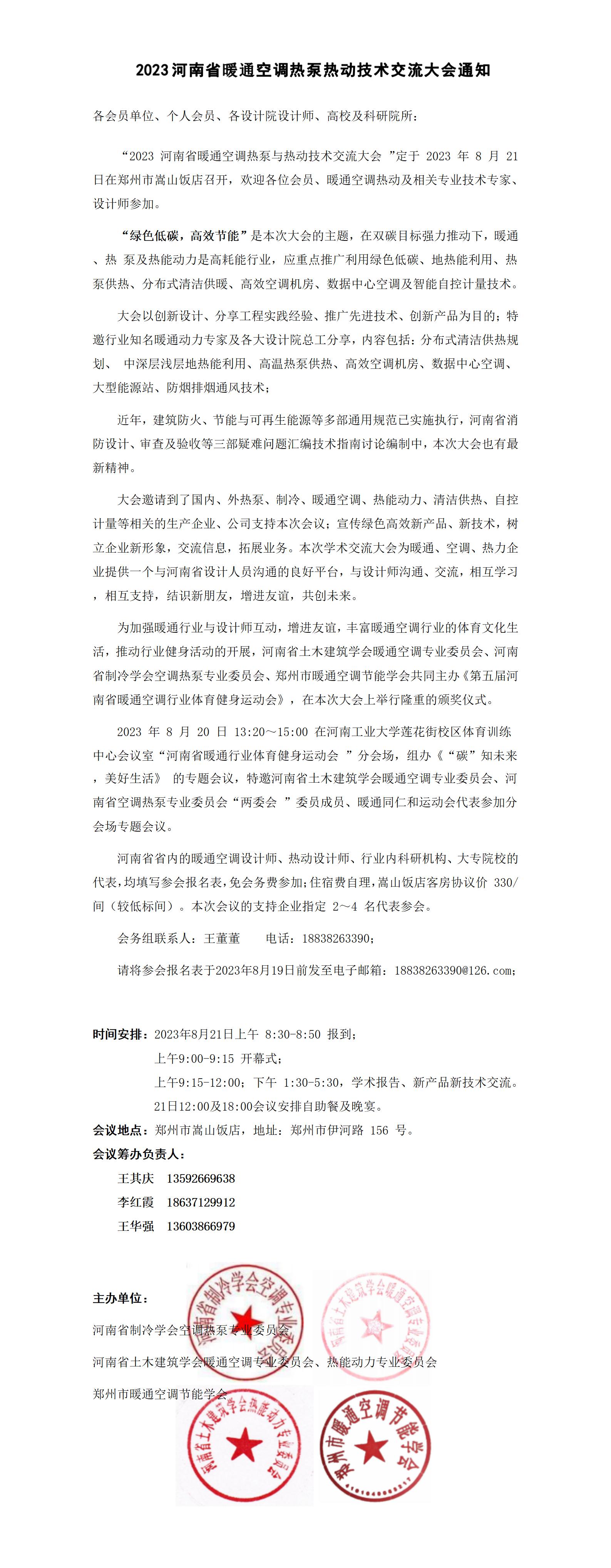 2023 河南省暖通空调热泵热动技术交流大会通知-河南省制冷学会 (hnrecar.com.cn)