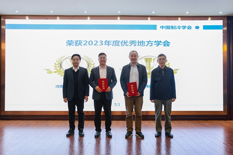河南省制冷学会首次以总分第一名的成绩连续四次荣获“2023年度优秀地方学会”荣誉称号。中国制冷学会监事长金嘉玮先生、高级顾问孟庆国先生为优秀地方学会颁发了荣誉证书。